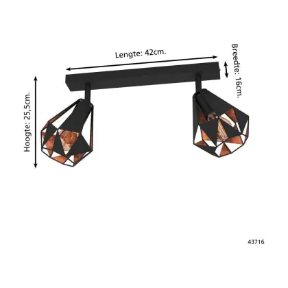 Eglo Deckenleuchte Carlton 7 Stahl Schwarz Bernstein | IP20 - Geeignet für 2x E27