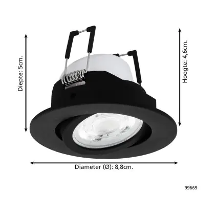 Eglo Led-Spot Saliceto-Z Aluminium Schwarz 4.7W 440lm - 827-865 Abstimmbares Weiß + RGB | 88mm - Ausschnitt 68mm - IP20 - Zigbee Dimmbar
