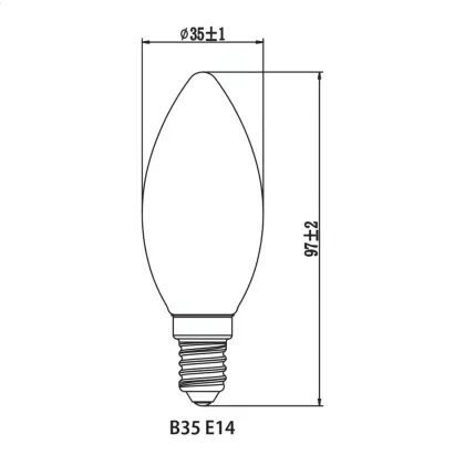 | Herstellername | Budgetlight Lucent Filament LED Candle B35 E14 220-240V 2.5W 250LM CRI80 2700K NON-DIM (25W eqv.) | |