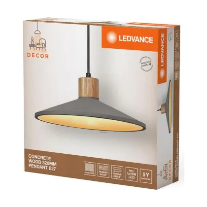 Ledvance Decor Beton/Stahl/Holz Pendelleuchte 320 Dunkel Grau | Geeignet für E27