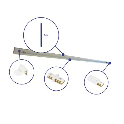 Bright Choice Rail Set Rail Monophasé 3 Mètre Blanc | incl. Embout, Connecteur d’Alimentation et I-Connecteur