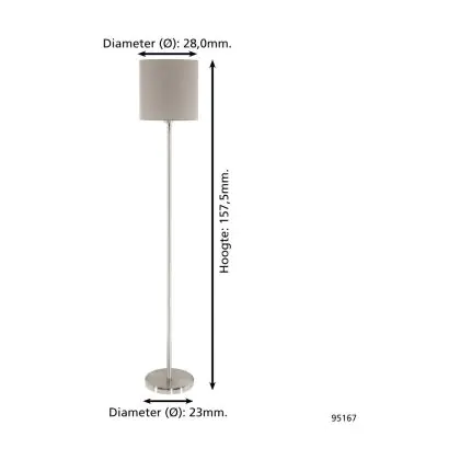 Eglo Lampadaires Salon Pasteri Échantillon Nickel Satiné Taupe | IP20 - Convient pour 1x E27