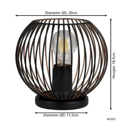 Eglo Lampe De Chevet Almanzora Échantillon Noir Cuivre | IP20 - Convient pour 1x E27