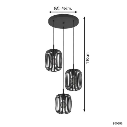 Eglo Suspension Luminaire Romazzina Échantillon Noir | Convient pour 3x E27