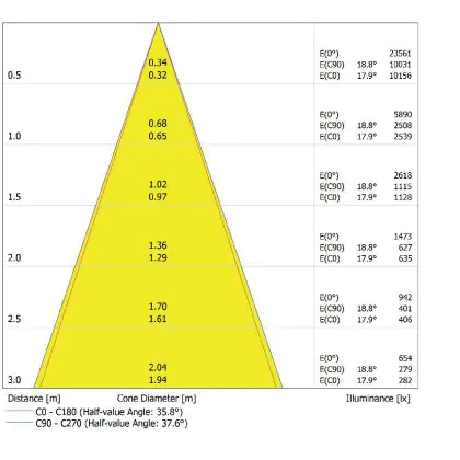 Un angle de diffusion est également appelé angle de rayonnement et indique l'angle du faisceau lumineux provenant d'une source lumineuse. Plus l'angle de diffusion en degrés (D) est petit, plus le faisceau est étroit. Vous voulez en savoir plus? Alors lisez notre blog.