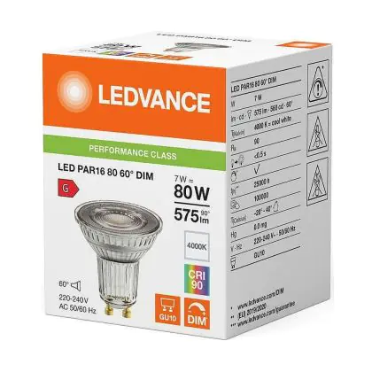 Description Lot 10x Ledvance LED PAR16 GU10 Réflecteur 7W 575lm 60D - 940 Blanc Froid | Meilleur Rendu De Couleur - Dimmable - Remplacement 80W
