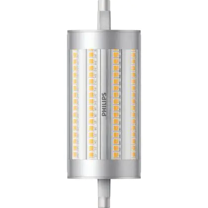 Lot 10x Philips Corepro LED Lineair R7s 118mm 17.5W 2460lm - 840 | Dimmable - Remplacement 150W est une ampoule tubulaire linéaire à double extrémité. Ce type d’ampoule permet de délivrer une lumière homogène à 360° avec comme température de couleur 4000K - Blanc Froid. Cette ampoule LED R7s de chez Philips est la solution idéale pour le remplacement de vos anciennes ampoules halogènes. Cette ampoule LED n’a pas besoin de transformateur, elle fonctionne avec 230V et peut se connecter directement sur le secteur électrique.