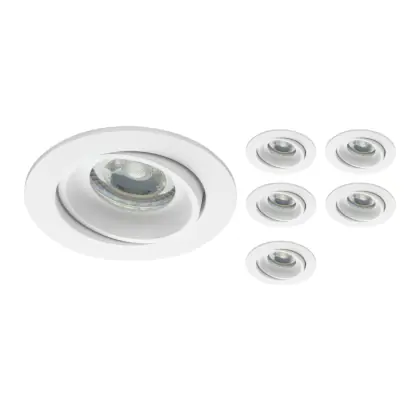 Lot 6x Encastré Spot Vision MR16 inclinable Blanc | Diamètre 69mm - GU10 Culot est un spot LED encastrable. Ce luminaire est conçu pour un éclairage d’accentuation pour un usage domestique ou bien professionnel. Fixture Retrofit, ce spot LED Budgetlight en Aluminium a besoin d’une place nécessaire de 69mm de largeur et 75mm de profondeur. Ce luminaire est compatible avec une ampoule GU10, il est important de faire attention si vous décidez de changer d’ampoule.